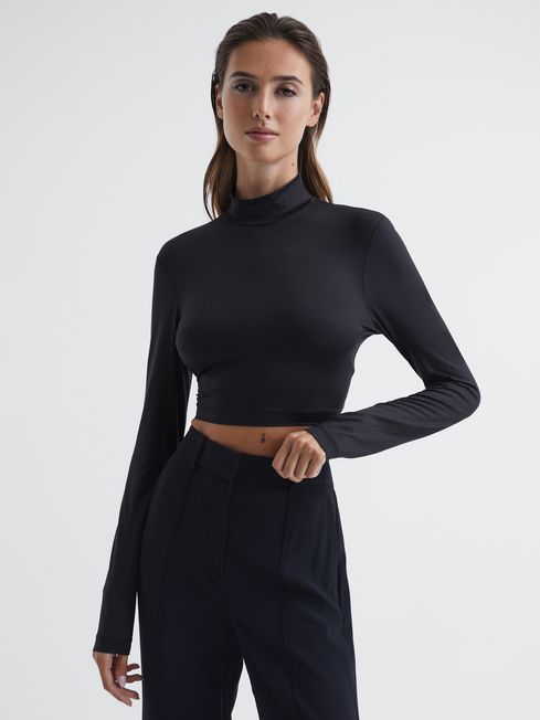 Reiss Bobbi Long Sleeve High Neck Crop Top Reiss