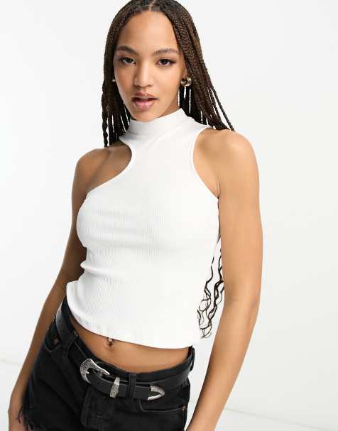 White Basic Rib High Neck Sleeveless Crop Top Prettylittlething